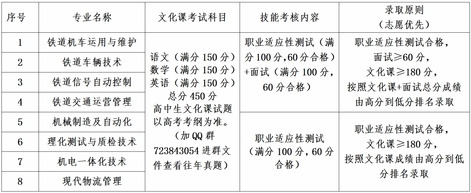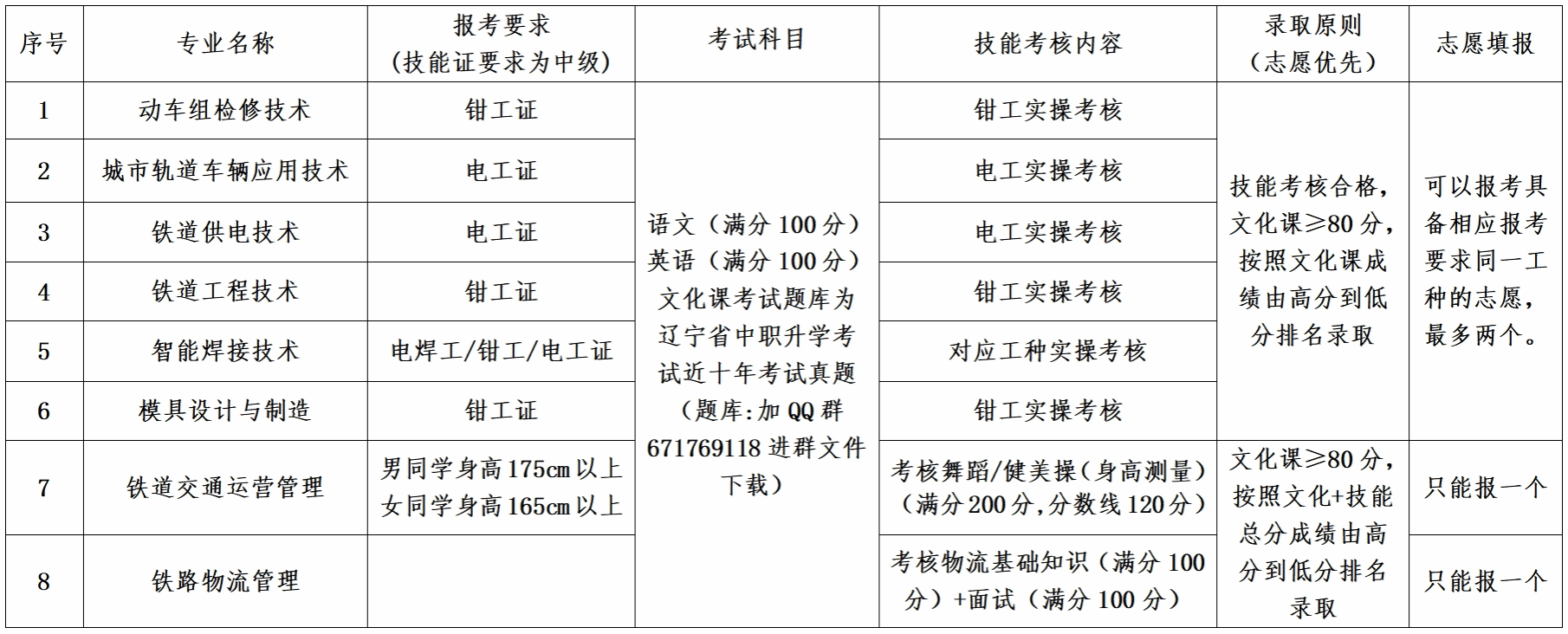 培养目标:本专业注重培养学生的职业能力,使学生德、智、体、美、劳全面发展,技术应用能力强、知识面较宽、综合素质高;具有铁道车辆检修、运用、管理等工作的技术技能型人才。