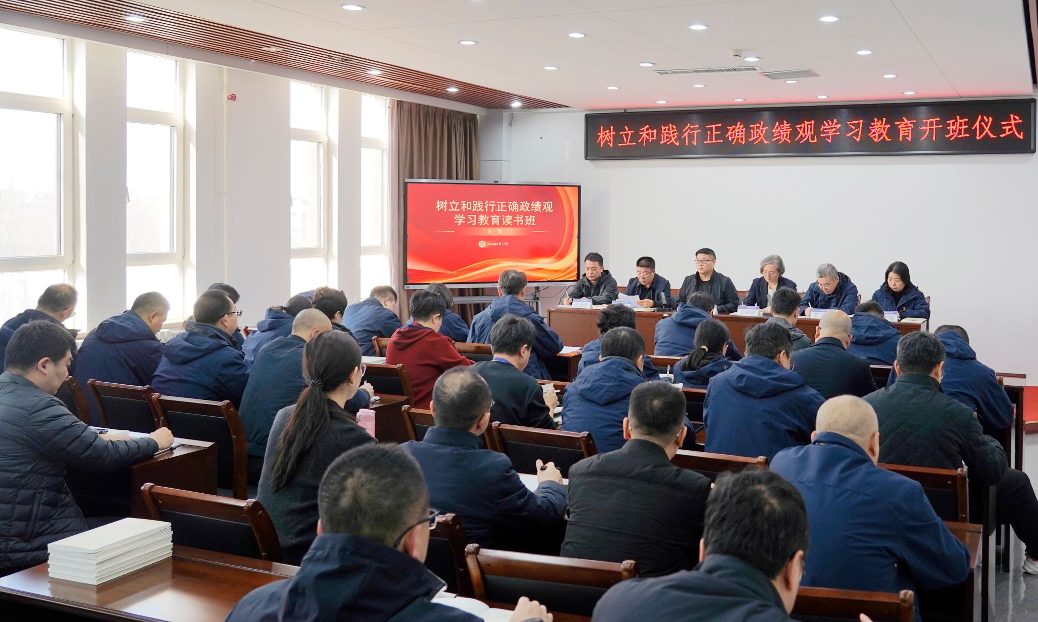 开班仪式后,读书班进入第一期集中学习环节,认真研读了《习近平关于树立和践行正确政绩观论述摘编》第一专题——“政绩观问题是一个根本性问题”,学习了习近平总书记在党的二十届四中全会、中央经济工作会议上的重要讲话精神。通过原原本本学原著、逐字逐句悟原理,全体干部进一步深化了对“政绩为谁而树、树什么样的政绩、靠什么树政绩”的认识。