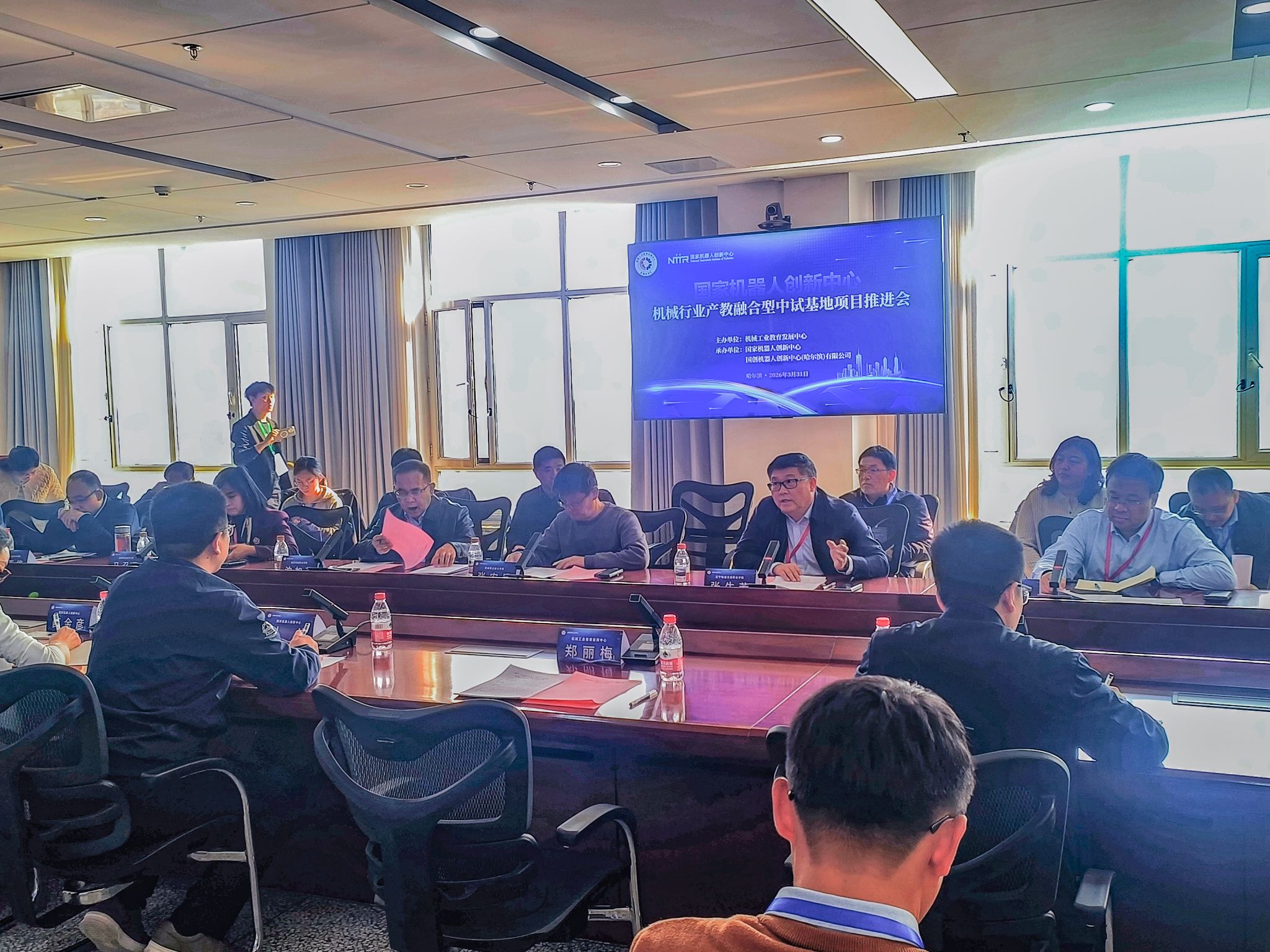 在国家机器人创新中心,张生芳出席由机械工业教育发展中心主办的“国家机器人创新中心”机械行业产教融合型中试基地项目启动仪式,我校成功入选首批项目建设单位。张生芳在座谈中指出,受邀参加该项目建设标志着学校科教融汇工作迈上新台阶。学校将依托自身人才与智力优势,深度参与关键技术攻关与成果转化,致力成为服务国家战略科技力量的重要一环。