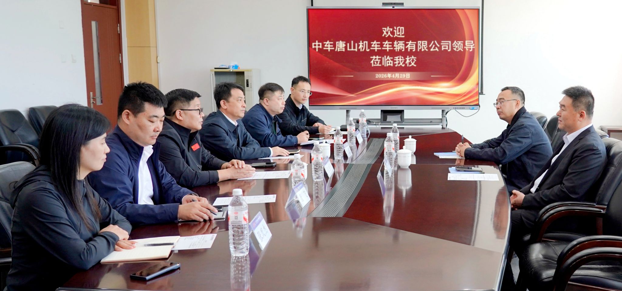 4月29日上午,中车唐山机车车辆有限公司副总经理李莹、产教融合项目经理马川莅临我校,就双方已签署的校企战略合作事项进行回访。校党委书记张生芳、副校长刘国军及相关职能部门负责人陪同调研并出席座谈。