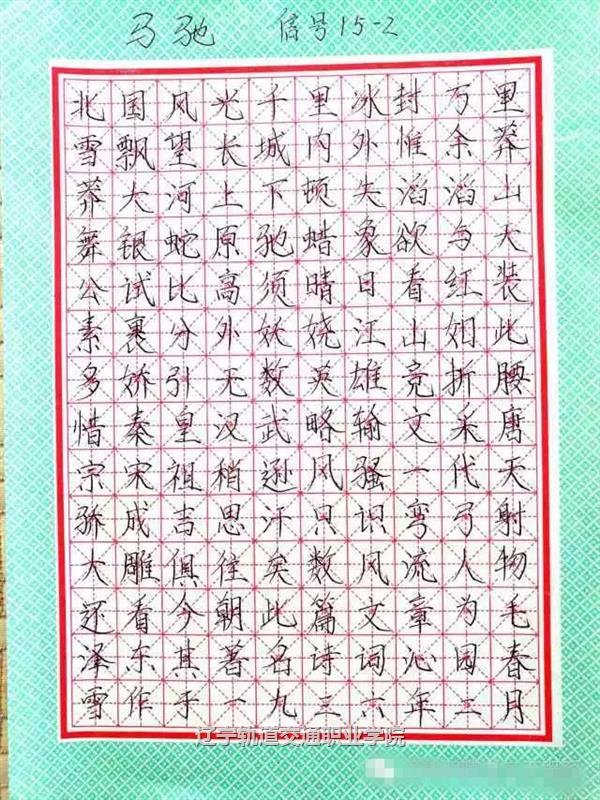 以“读诗千首、挥毫万字,传承中国文明,品鉴文字魅力,丰富校园生活,提高书写水平”为目的,2016年11月7日,辽宁轨道交通职业学院电气工程系举办了一场硬笔书法大赛,同学们积极参与,众多佳作纷纷亮相——
