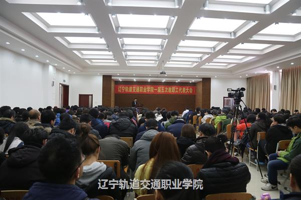 2017年2月25日,辽宁轨道交通职业学院隆重召开一届五次教职工代表大会。全院教职工齐聚学院继续教育培训基地多功能厅内,共同听取了《院2017年行政工作报告》、《院2016年财务经费执行情况与2017年财务预算(草案)报告》、《提案征集处理情况的报告》和《提案解答报告》。